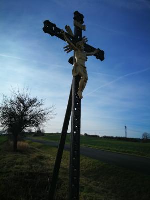 Obnova křížku na Poplužní ulici mezi Kotousovem a Hradištěm.