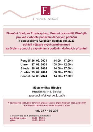 Úřední hodiny budou v období od 26.2. do 4.3.2024