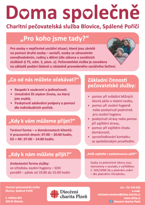 Charitní pečovatelská služba Blovice a Spálené Poříčí představuje nový letáček v rámci kampaně "Doma společně"