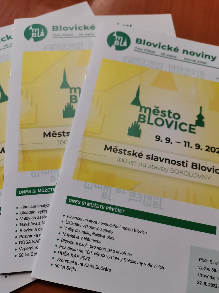 Vyzvědněte si na distribučních místech Blovické noviny - super čtení o dění v Blovicích. Hlavním tématem je program Městských slavností, které se uskuteční 9. až 11. září.