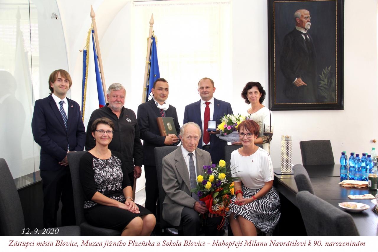 Slavnostní okamžiky byly naplněny v rámci Vzpomínkového aktu na blovické radnici, kde 11.září 2020 představitelé města Blovice, Muzea jižního Plzeňska a Sokola Blovice oficiálně popřáli panu Milanu Navrátilovi ke krásným devadesátým narozeninám a poděkovali mu za jeho dlouhodobý přínos pro naše město. Vážíme si jeho obrovského životního elánu. Přejeme mu mnoho zdraví do dalších let!