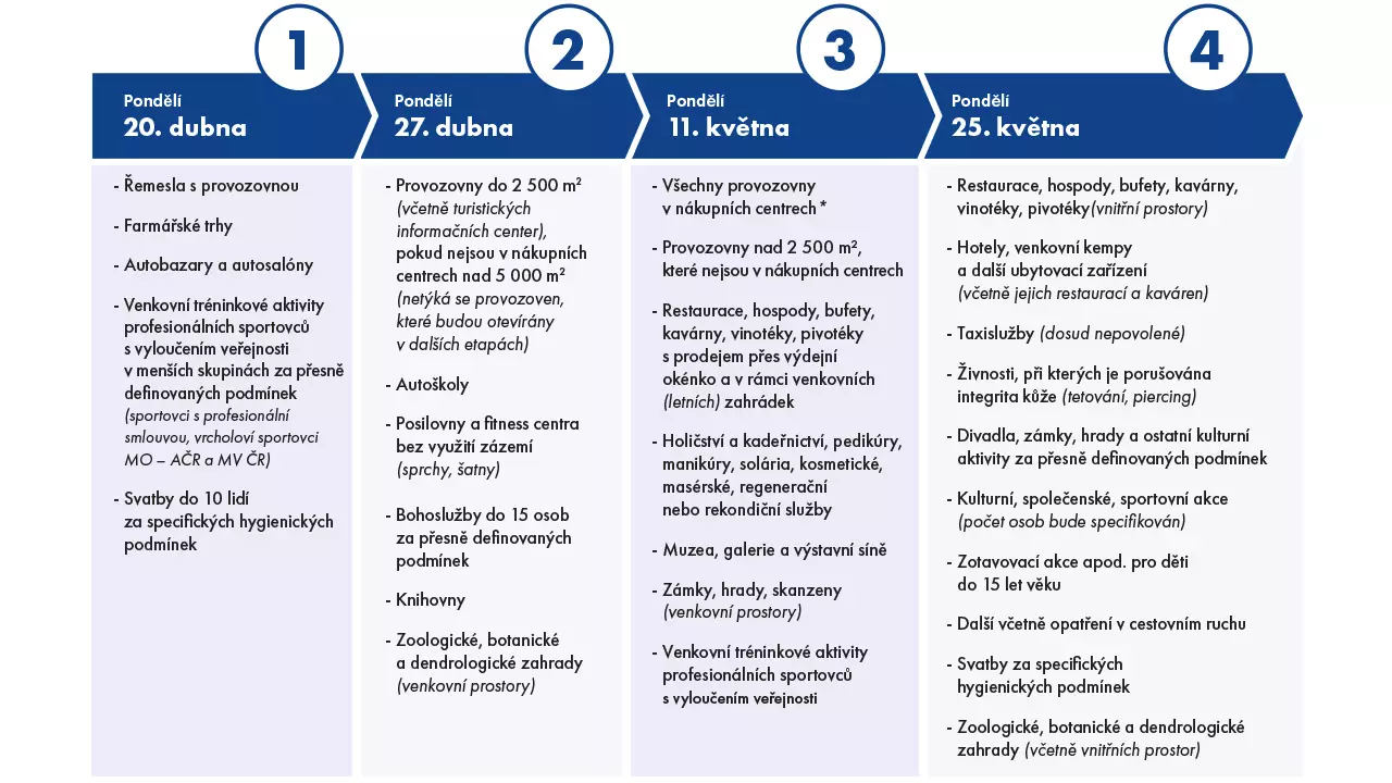 Informace pro občany - Upravený harmonogram uvolnění podnikatelských a dalších činností