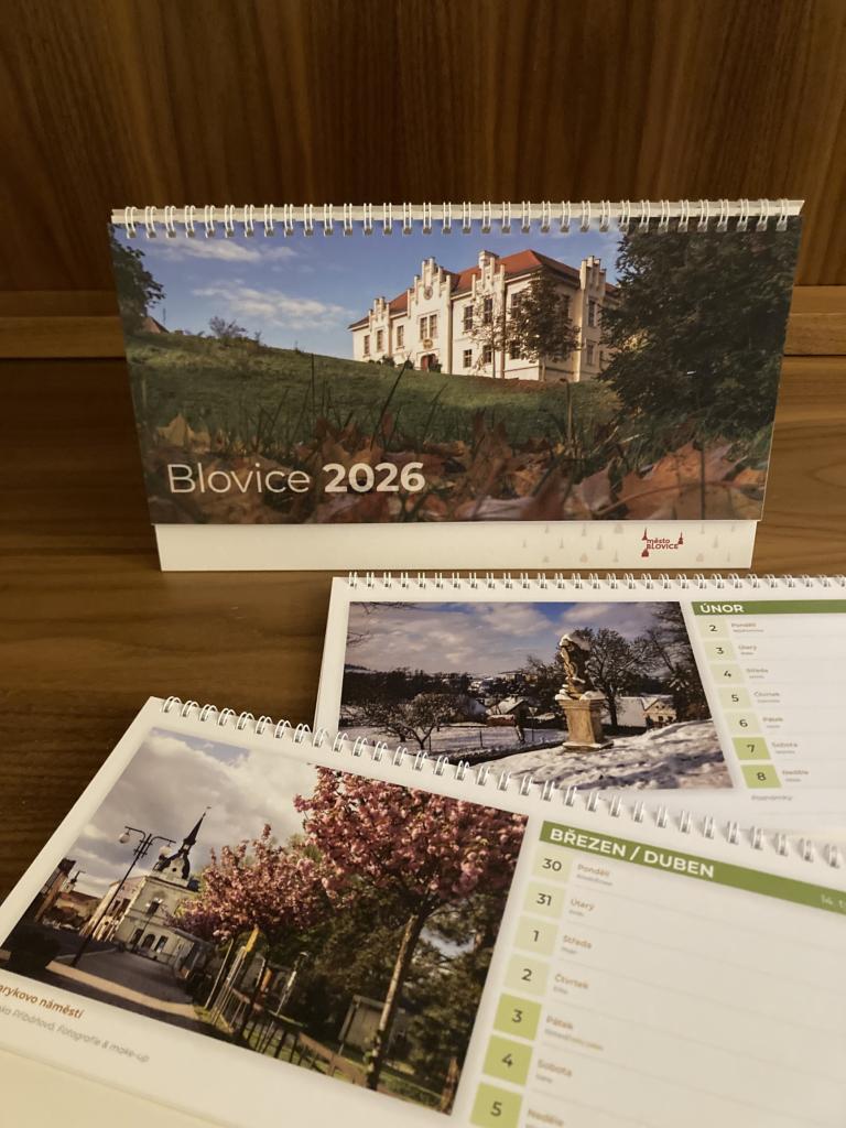 Město Blovice nabízí k prodeji stolní kalendáře na rok 2026. Hlavním motivem jsou tradiční i netradiční fotografie z Blovic a jejich místních částí. Kalendáře jsou v prodeji za 80 Kč na obvyklých místech. Zájemci si je mohou zakoupit na podatelně MěÚ, v knihovně či v Papírnictví Šmolíková. Další možností je prodejní městský stánek na všech akcích pořádaných městem Blovice. Již v sobotu 25.10. budou kalendáře k dispozici na Farmářsko řemeslném trhu na náměstí a dále na Svatomartinské slavnosti dne 8. listopadu.
