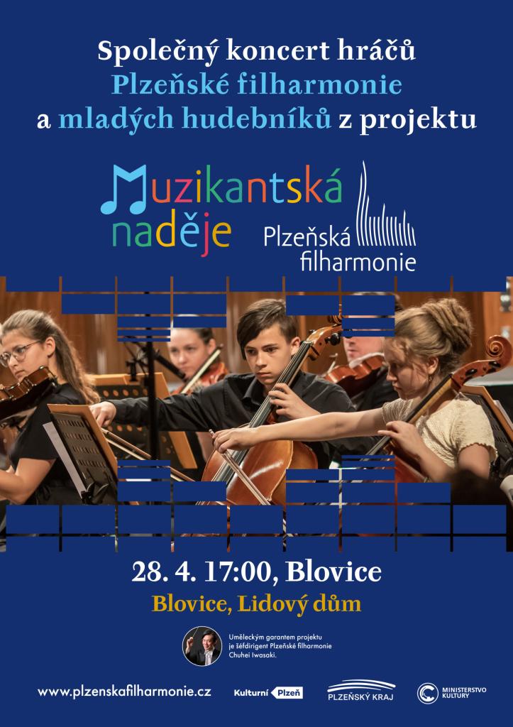 Na konci dubna tak budou mít všichni žáci ZUŠ Blovice možnost tímto způsobem podpořit své vrstevníky, studenty hudby z plzeňských ZUŠ. V neděli 28. dubna 2024 se totiž opět po roce v Blovicích uskuteční koncert orchestru "Muzikantská naděje". Jedná se o projekt organizovaný Plzeňskou filharmonií, který má za cíl podpořit žáky základních uměleckých škol a začlenit je do hry v orchestru. Společně s členy Plzeňské filharmonie talentovaní žáci plzeňských ZUŠ nastudovali posluchačsky