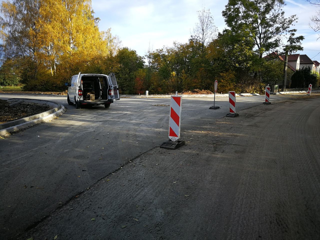 Napojení na ulici Poplužní je už po první vrstvě asfaltobetonu již zřetelné, na křižovatce platí dopravní omezení, v nejbližších dnech bude platit úplná uzavírka Poplužní ulice, dbejte prosím zvýšené opatrnosti.