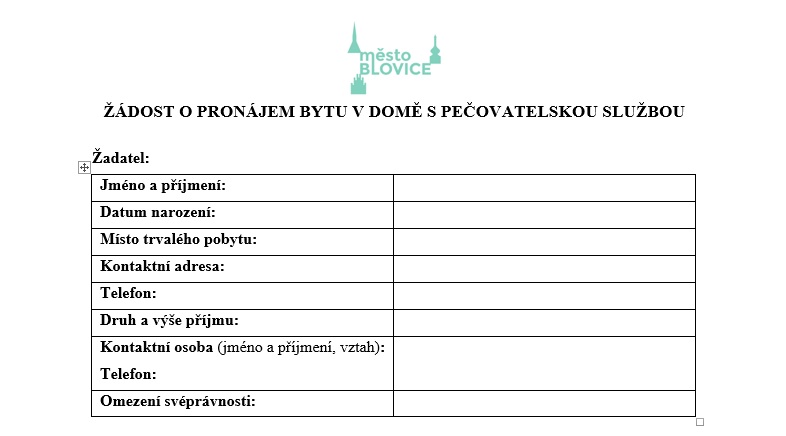- Žádost o byt v domě s pečovatelskou službou - zde ke stažení