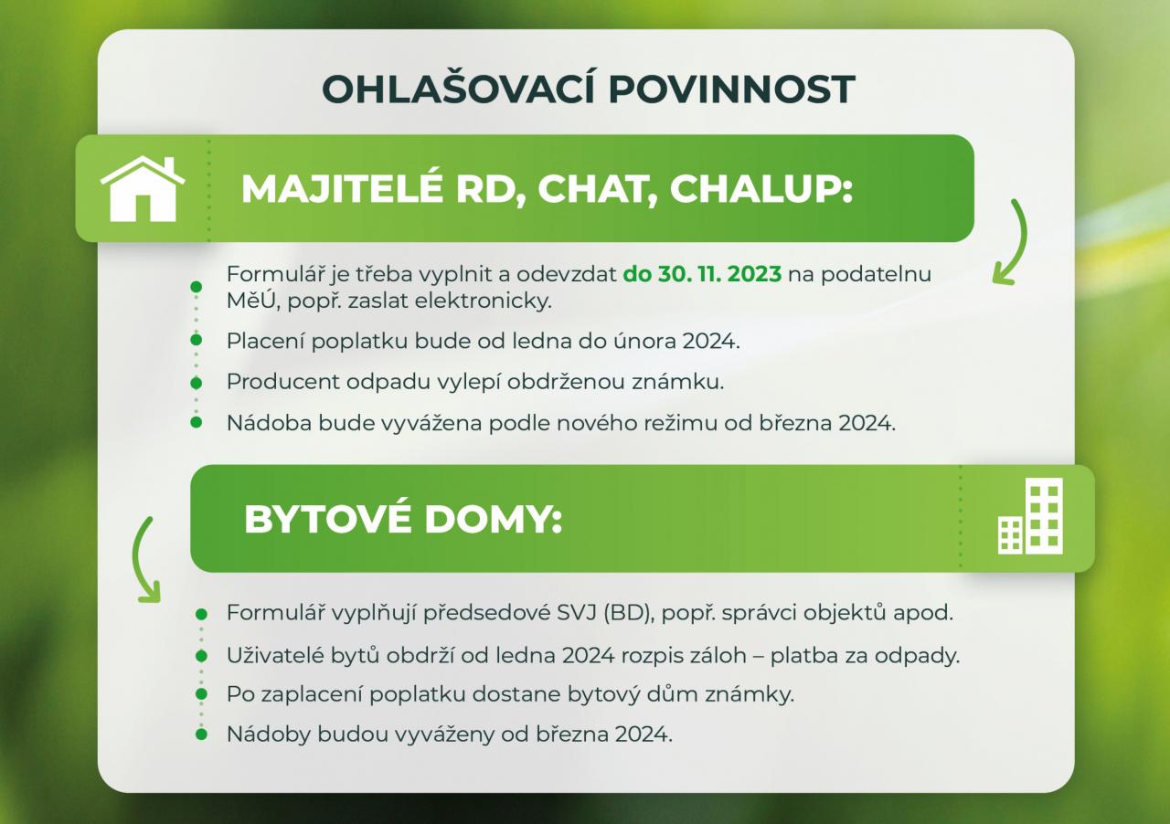 Přinášíme informace k ohlašovací povinnosti - formulář prosím doručit na MěÚ osobně či elektronicky do 30. listopadu - zde ke stažení