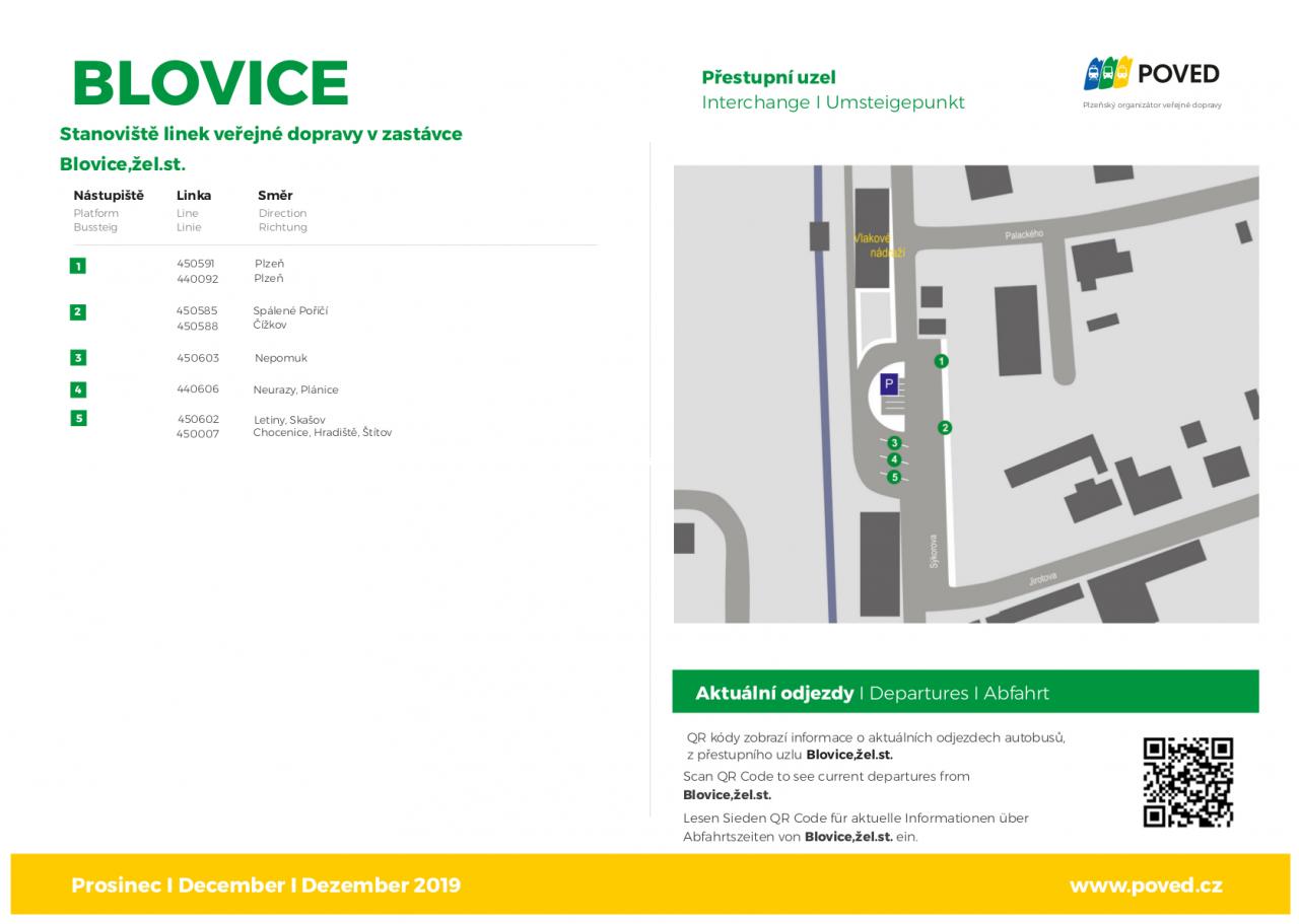 Stanoviště autobusových linek na nádraží v Blovicích