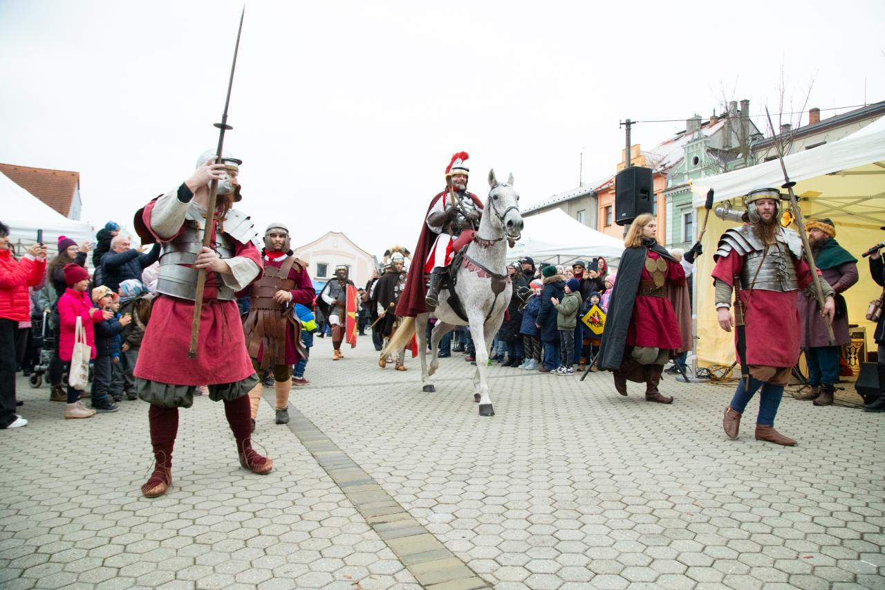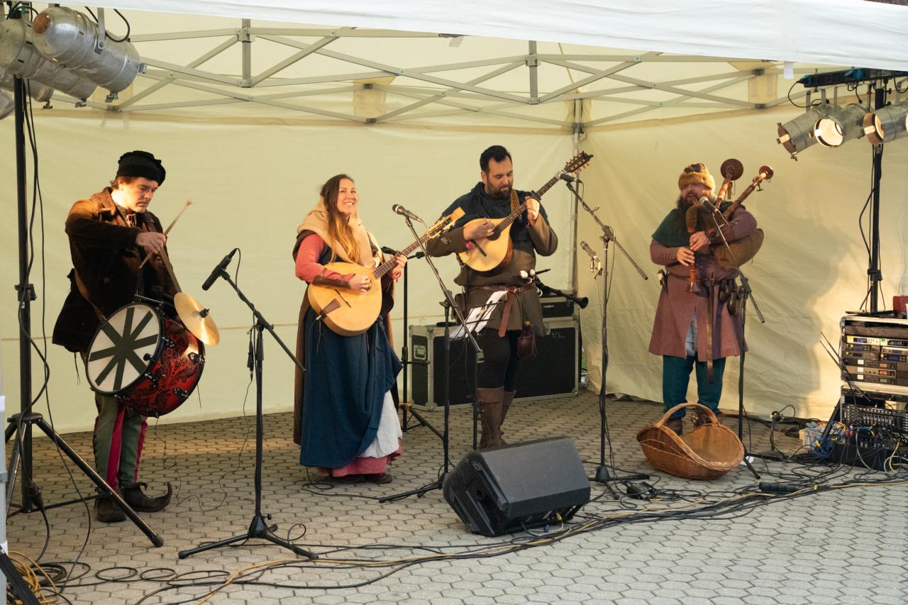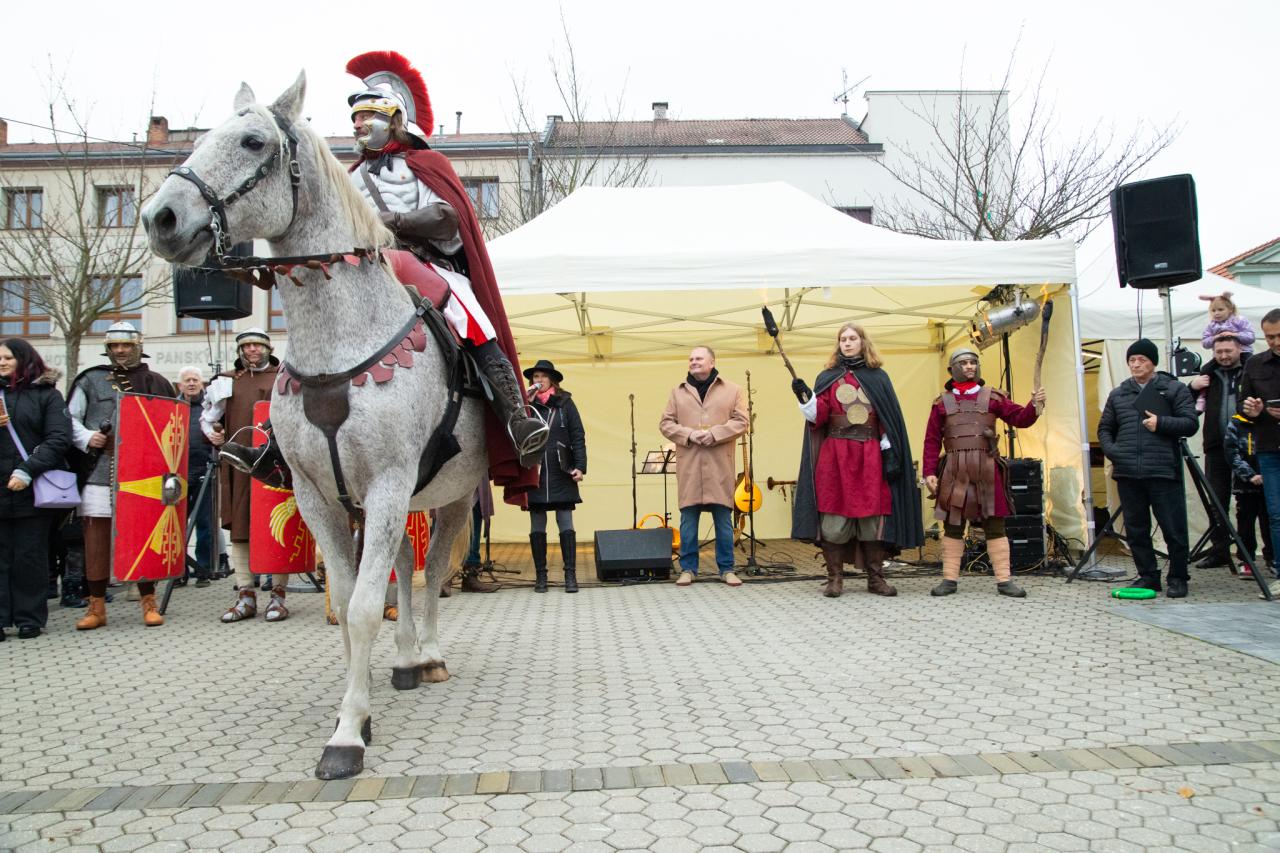 Atmosféru dokreslila dobová kapela Turdus Musikus, a zlatým hřebem odpoledne byl hlavně pro děti příjezd sv. Martina na bílém koni s družinou římských vojáků v podání Rytířů Koruny České. Ti nás také provedli komentovanou scénkou o životě sv. Martina.