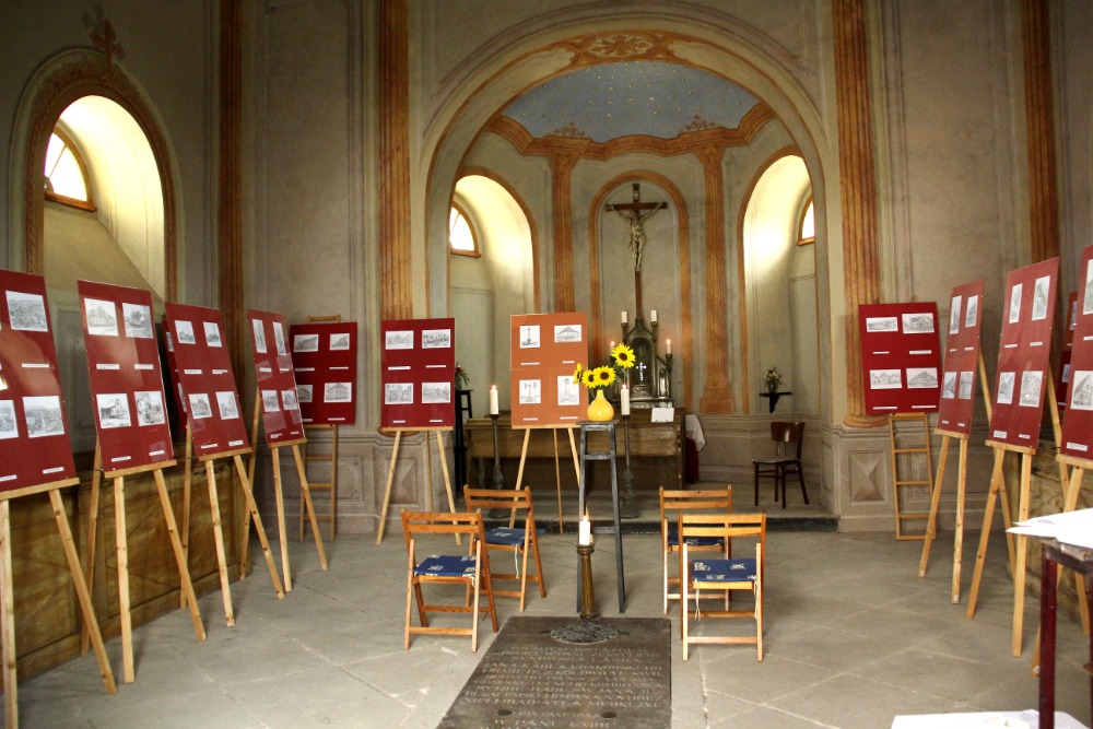 Ve čtvrtek 10.9.2020 proběhlo u kaple krásné kulturní odpoledne za účasti cca 70 lidí. Nejprve došlo k vysvěcení hrobky s krátkým historickým výkladem. Následovala vernisáž výstavy kreseb Jaroslava Hodka Paměť Blovic. Výstava bude otevřena od 11.9. do 13.9. vždy od 14 do 16 hodin. Děkujeme za návštěvu!