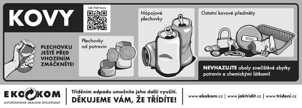 Třídění kovů je prospěšné životnímu prostředí a šetří peníze města i občanů. Kovy nepatří do komunálního odpadu a komunální odpad nesmí do kovů!