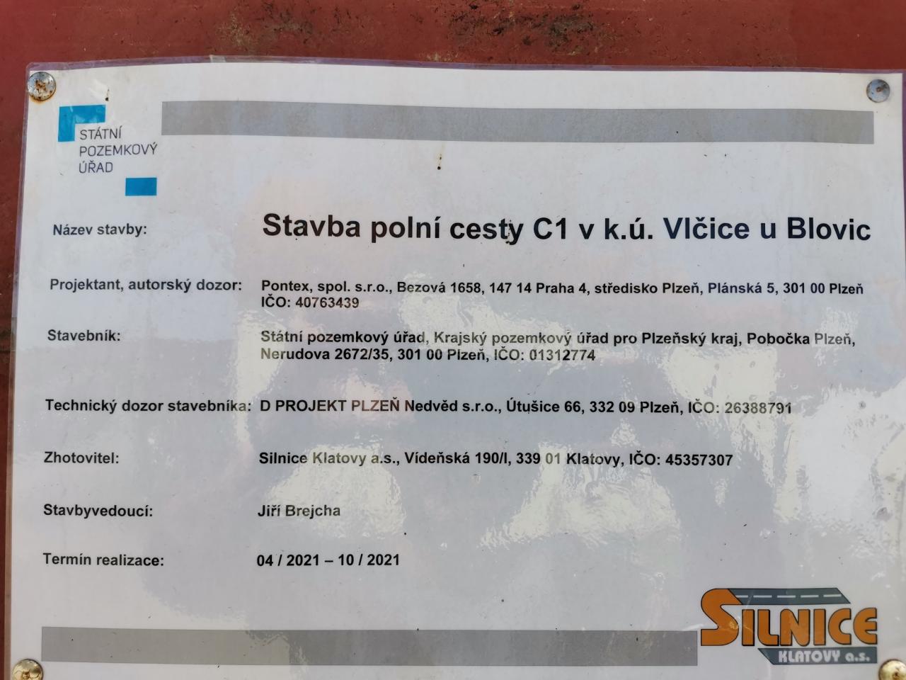 Upozorňujeme veřejnost, že je do odvolání uzavřena polní cesta mezi Vlčicemi a Novou Hutí, a to z důvodu pokračující výstavby nové asfaltové komunikace C1, které provádí Státní pozemkový úřad ve spolupráci se zhotovitelskou firmou Silnice Klatovy a.s..