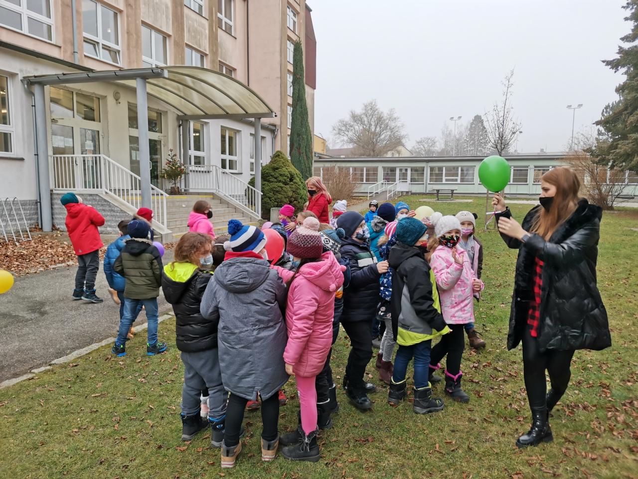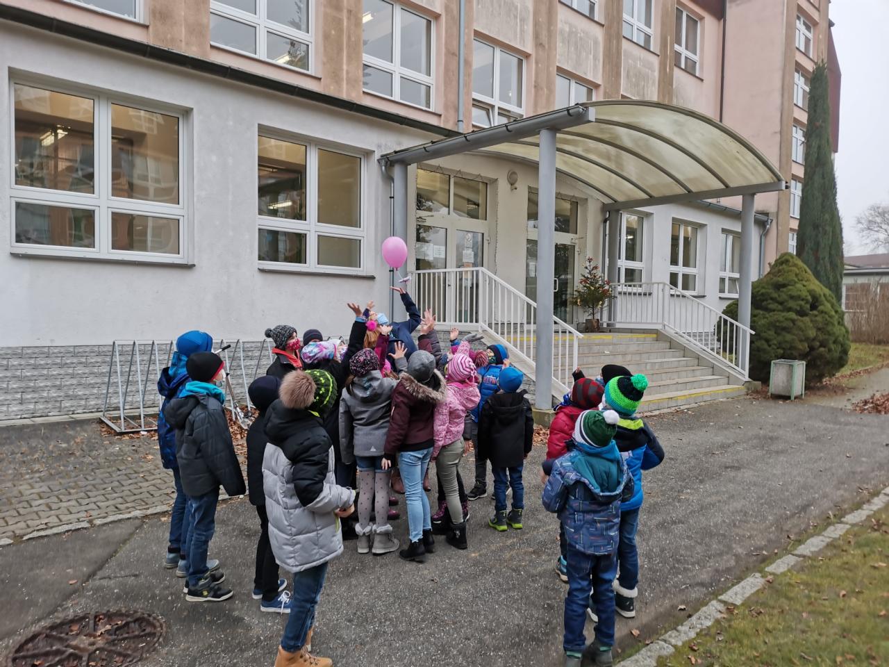 Základní škola ukončila svojí činnost před vánočními svátky slavnostním aktem - vypuštěním balónků štěstí. Děti napsaly svá přání na kartičky, které byly odeslány Ježíškovi :).