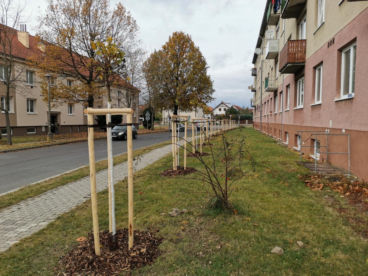 V rámci dalšího projektu "Dosadba dřevin město Blovice" podpořeného Státním fondem ŽP jsou navrženy výsadby ve vnitroblocích v ulici 5.května v charakteru stromořadí podél chodníků, parkovišť a hracích ploch pro děti. Do alejových výsadeb v blízkosti budov jsou navrženy okrasné dřeviny nižšího vzrůstu z důvodu blízkosti budov. Vyšší dřeviny budou vysazované do volnějších prostranství Celkem se jedná o 31 ks stromů - 10 ks lípy mongolské, 10 ks dubu letního a 11 ks javoru mléč.