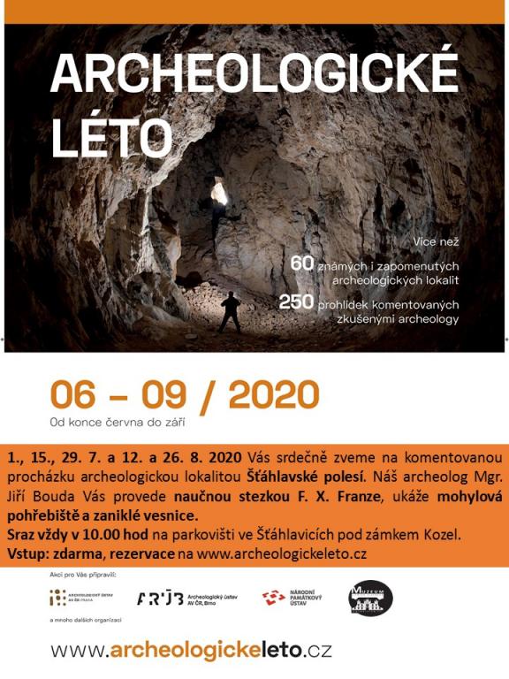 Vydejte se s naším archeologem Mgr. Jiřím Boudou prozkoumat nedalekou archeologickou lokalitu Šťahlavské polesí. V rámci komentované procházky si projdete naučnou stezku F. X. France, mohylová pohřebiště a zaniklé středověké vesnice. Sraz účastníků je na parkovišti Šťáhlavice u zámku Kozel v 10 hod. Program bude trvat